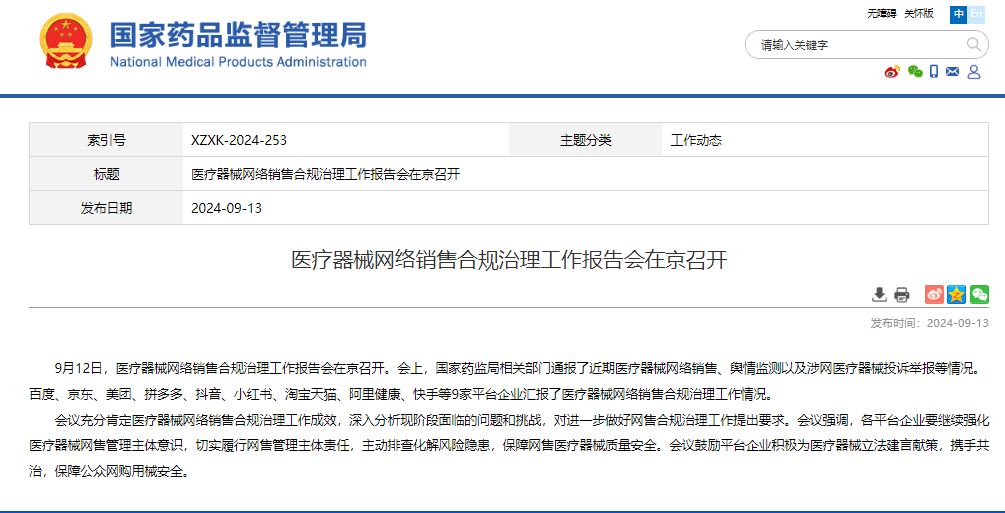 医疗器械网络销售合规治理工作报告会在京召开