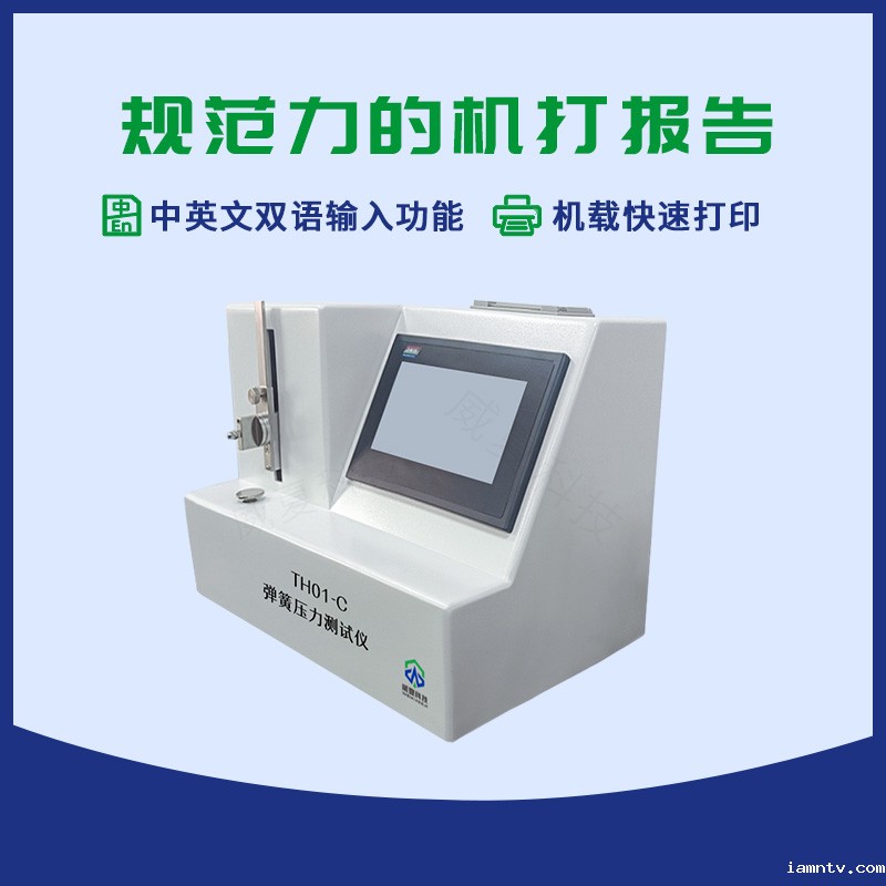 TH01-C弹簧压力测试仪由可编程控制器,触摸屏,力值传感器,传动装置,机载打印机等组成,提供中英文菜单显示,设定了人机对话各项参数自动运行测试模式。